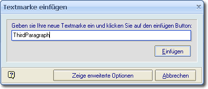 In der Grafik heißt die Verknüpfung "ThirdParagraph". Ändern Sie einfach diesen Namen auf die gewünschte Bezeichnung. Klicken Sie auf den Button "Erweitert", sehen Sie dieses Fenster: